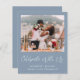 Chic budget-friendly elopement or private wedding announcement and wedding reception invitation. The front features your photograph, "Celebrate With Us" in an elegant white script and your first names and wedding date and location in simple modern white typography. On the reverse side, personalise your wedding or elopement announcement in more detail, add a reception or party invitation and sign your names in a signature-like script. This budget semi-gloss paper is similar in weight to photo paper. A larger 5x7 traditional card stock version is also available (message us for the link).