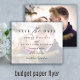 Classy formal calligraphy script modern BUDGET wedding save the date card FLYER with custom photo transparent overlay. +++++++++++ Suitable for any season and theme. ++++++++++ Easy to personalize with your text and picture on both sides! +++++++++++ PLEASE READ THIS BEFORE PURCHASING! This is a budget affordable wedding card printed on a FLYER. ++++ Please note that BUDGET PAPER IS THIN - You can upgrade to have this card printed on cardstock ++++ ENVELOPES NOT INCLUDED. +++ Double-check all the information and spelling of your text because you will receive exactly what you see - no one else will check anything before printing. ++++ This card is designed for size 4.5" x 5.6". In the case you choose another size of the card and text goes outside page, everything needs to be fixed before adding the product to cart. Please ask Live Design Service for help.