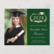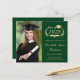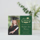 Modern budget-friendly green graduation announcement with "Class of" inside of a light gold illustration of laurel wreath incorporating a grad cap topper and diploma, a photo of the graduate and their name in an elegant light gold script. Add their school, major, honours or future plans.