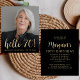 The front of this 70th birthday invitation features the guest of honour's photo with a gold-coloured text overlay. The phrase "hello 70!" appears in elegant gold-coloured calligraphy script, followed by the guest of honour's name and birthday in sans serif font. A dark screen helps make the text pop. Customise the reverse side with the name and party details on a black background. A great way to celebrate someone who's turning seventy! (NOTE: Envelopes are not included automatically with this budget invitation. To add envelopes to your order, please use the "Envelopes" drop-down menu.)