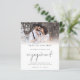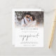 PLEASE NOTE There are two paper options to choose from for this size (4.5 x 5.6”) in the Budget range. For this product, I would highly recommend the semi-gloss which is a 110 gsm card stock, similar in thickness to a postcard. The Satin option is a much thinner paper 80gsm. The default is set to semi-gloss. ***PLEASE NOTE there is ONE invite per sheet. Budget Photo Overlay Engagement Announcement. Engagement is in a stylish set script. Replace the sample photo with your own favourite.