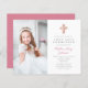 This budget photo pink floral cross first communion invitation paper sheet is an affordable option that is printed on thinner and smaller paper than the standard invitation card paper. For complete information, please review the 'ABOUT PAPER SHEETS' section on this site. If you're looking for the standard card paper version or matching products, either check out the design collection or visit our Christian stationery store, Guiding Star.