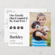 Our Family Has Expanded By Four Feet ! Introduce your new little pup with this simple modern photo and paw print design announcement card for new dog's, and puppies. These budget new pet announcement postcards need to be mailed as oversized postcards so may incur standard postage fees but they don't need an envelope or a return address label.