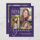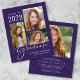 Budget-friendly purple graduation announcement and party invitation featuring a three picture photo collage and "Graduate" written in a stylish white script, and the grad's name, class year and school or university in modern white typography. On the reverse side, add an additional picture and the graduation party details.