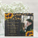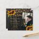 Elegant chic summer or fall wedding stylish BUDGET affordable invitation template on dark brown barn wood featuring beautiful sunflowers bouquets, strings or twinkle lights and a chic faux gold calligraphy script. ++++++++++++++ Easy to personalise with your details and photo! +++++++++++ The invitation is suitable for elegant summer or autumn fall rustic country barn weddings. ++++++++++++++++++++++++ PLEASE READ THIS BEFORE PURCHASING! This is a budget affordable card printed on a paper sheet (each sheet has one card). ++++ For the best rapport price-quality, our advice is to choose the Semi-Gloss paper type (it is thick enough to be used for stationery) ++++ If you need envelopes, choose the ENVELOPE OPTION. +++ Double-check all the information and spelling of your text because you will receive exactly what you see - no one else will check anything before printing. ++++ This card is designed for size 4.5" x 5.6". In the case you choose another size of the card and text goes outside page, everything needs to be fixed before adding the product to cart. Please ask Live Design Service for help.