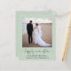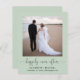 Chic budget-friendly sage green elopement or private wedding announcement and reception invitation. The front features your photograph, "happily ever after" written in a stylish script with swashes and your first names and wedding date and location. On the reverse side, personalise your wedding announcement in more detail, add a reception or party invitation and sign your married names in a signature-like script.