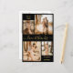 Elegant, modern, minimalist black and gold hand Lettered 4 photo collage personalised wedding thank you personalised affordable low budget THIN card. ***PLEASE NOTE, SCROLL DOWN FOR MORE INFO!*** Stylish wedding thank you card template featuring four (4) photo on the front and one (1) photo on the back side. With the text "Love and thanks" in a cursive hand lettered typography swash-tail font script in gold colour on black background. Little heart shape between the names. Personalise your name and thank you message. *** PLEASE NOTE! *** BUDGET PAPER/FLYER IS PAPER THIN. *** UPGRADE THE PAPER FOR A THICKER PAPER. *** Traditional Cardstock with Envelopes: https://www.zazzle.com/love_and_thanks_script_black_gold_collage_wedding_thank_you_card-256443481225826268 https://www.zazzle.com/love_and_thanks_script_black_gold_collage_wedding_thank_you_card-256283855226677317