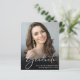A budget-friendly option to announce your graduate's achievements. This stylish graduation announcement features her favourite photo with "Graduate" written on top in an elegant white script. Underneath you can add her name, school and class year. On the reverse side, add an additional photograph and a personalised message.