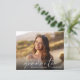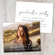 Elegant budget-friendly graduation party invitation featuring the grad's photo overlayed with "graduate" in a chic modern white script and their name and class year in simple white lettering. On the back, add your graduation party details. This budget semi-gloss paper is similar in weight to photo paper. A larger 5x7 traditional card stock version is also available (message us for the link).
