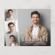 Budget-friendly modern graduation announcement and party invitation featuring the graduate's photo overlayed with a strip of three smaller square photos and "Graduate," their name, school and class year in simple white typography. Add the party details on the reverse side.