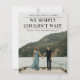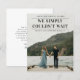 A timely wedding announcement featuring We simply couldn't wait headline. A great way to let loved ones know you've tied the knot. The backside allows for a personalised message to friends and family or can be removed if desired. Click edit to customise.