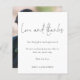 Photo Wedding Love and Thanks Script. A budget friendly SMALLER 4.5” x 5.6” alternative. Available in a SEMI GLOSS 110 lb CARD STOCK or a SATIN FINISH 80 lb THINNER PAPER STOCK. Envelopes are an optional extra. A minimalist typography design with a set stylish handwriting style script for Love and Thanks. On the back replace the sample picture with your own favourite from your day as a keepsake for your guests. Easily personalise the rest of the text with your message and names.