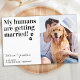 Let your Best Dog announce your wedding with this modern and elegant 'My Humans Are Getting Married' pet dog save the date postcards. These budget wedding invitation postcards need to be mailed as oversized postcards so may incur standard postage fees but they don't need an envelope or a return address label. Customise with your favourite engagement photo, dog's photo, or photo with the dog , and personalise with names, date, and wedding location. These dog wedding invitations are a must for dog lovers and dog moms! COPYRIGHT © 2020 Judy Burrows, Black Dog Art - All Rights Reserved. Budget Photo Wedding Pet Dog Save The Date Cards