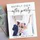 Budget-friendly modern elopement or private wedding announcement and reception invitation. The front features your photo, "Happily Ever After Party" in a mix of simple typography and a trendy script with swashes and your first names and wedding date. On the reverse side, personalise your marriage announcement and reception invitation and add your names in a signature-like script.