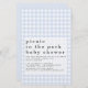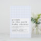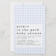 A LARGER size 5.5” x 8.5” at a budget price, on an elegant 110 lb LINEN stock – for a luxury feel at great value, this is perfect for invitations, menus, programs etc. This budget size alternative is also available in other paper choices. The SEMI-GLOSS 110 lb card stock is about the same thickness as a postcard, so also works well for invitations. The FELT 100 lbs paper is buff coloured, NOT white, so adds a rustic touch. The MATTE 80lbs paper stock is bright white, for crisp printing, great for your menus and programs, whilst the SATIN 80lbs paper is thin and light, ideal for enclosures. PLEASE NOTE THE OPTIONAL ENVELOPES ARE A LITTLE BIGGER IN SIZE AT 6.75” x 9” approx. Picnic Park Baby Shower Green Gingham invite. Gender neutral. The occasion header is large in stylish lowercase with the details at the bottom on an opacity layer overlaid onto the gingham background. Easily personalise the text to your own details.