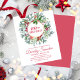 100th Birthday is surrounded by a beautiful and rustic, winter greenery wreath. Soft green pine branches radiate out from a round gold frame. Deep red berries are sprinkled around the gold frame. A deep green holly sprig is placed at the top of the gold frame to add visual interest. The birthday celebrant's name is written in large, pretty script.