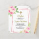 Budget pink and yellow roses with pink frame and greenery leaves decorate baptism invitation.