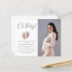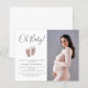This girl's baby shower invitation is decorated with Oh Baby! in stylish typography and cute blush-pink glitter baby feet. Easily customisable with your photo and details. Original Design © Michele Davies.