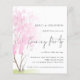 Budget Pink Blossom Wedding Evening Party Invitation. A value for money BUDGET alternative on a smaller size 4.5 x 5.6” semi-gloss 110lbs weight, which is of similar thickness to a postcard (however is not suitable to use as a postcard.). PLEASE NOTE there is ONE invite per sheet. A whimiscal watercolor tree with pink spring blossom to invite your evening wedding guests. A graduated tint is on top so the illustration is behind the text which is partially overlaid on top and to the right. A set handwritten script for Evening Party and the rest of the text you can easily personalise.