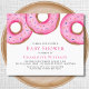 This budget pink doughnuts invitation invites family and friends to your girl's baby shower.