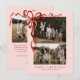 Budget Pink Elegant Red Bow Christmas Four Photo Holiday Card