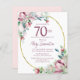 Elegant 70th Birthday Party invitation template features a gold frame and two arrangements of blush pink roses. All of text is editable.