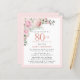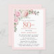 Soft blush pink frame with an elegant pink rose floral arrangement in the upper left corner. 80th is written in a beautiful rose gold texture. Pretty and feminine design.