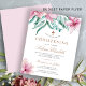 A modern spring or summer baby girl or boy christening budget affordable invitation FLYER featuring watercolor blush pink magnolia flowers, green foliage, and eucalyptus leaves and a classy handwritten style calligraphy script. +++++++++++ Easy to personalise it with your details! ++++++++++ Suitable for modern floral, outdoor garden or summer backyard elegant newborn baby baptism ceremonies and receptions. +++++++++++++++ PLEASE READ THIS BEFORE PURCHASING! This is a budget affordable card printed on a FLYER. ++++ Please note that BUDGET PAPER IS THIN - You can upgrade to have this card printed on cardstock ++++ ENVELOPES NOT INCLUDED. +++ Double-check all the information and spelling of your text because you will receive exactly what you see - no one else will check anything before printing. ++++ This card is designed for size 4.5" x 5.6". In the case you choose another size of the card and text goes outside page, everything needs to be fixed before adding the product to cart. Please ask Live Design Service for help.