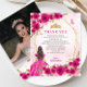 Modern Magenta Fuchsia Hot Blush Pink Gold Glitter Sparkle Floral Rose Butterfly Princess Tiara Crown Quinceañera Birthday Photo Thank You Card