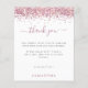 Pink Glitter Photo Hen Party Thank You. A budget price SMALLER 4.5” x 5.6” alternative. Available in a SEMI-GLOSS 110 lb CARD STOCK which is the default option (thicker for invitations), OR a SATIN FINISH 80 lb THINNER PAPER STOCK (ideal for enclosures). Envelopes are an optional extra and are slightly larger than the card size. A faux glitter border in pretty pink is at the top, and Thank You is in an elegant script. Easily personalise the text to your own details. On the back swap in your favourite photo from your party of portrait orientation.