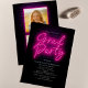 Grad Photo Pink Neon Sign Graduation Party Budget Invitation featuring popular white text and photos on the reverse side you can easily replace with yours. Change the date, party details and add your photos on the reverse side by clicking the "Personalise" button