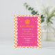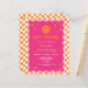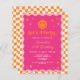 Budget pink and orange happy face chequered wavy girl birthday invitation.