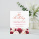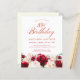 Red roses and blush pink peonies are nestled in dark green leaves on this beautiful and unique birthday invitation.