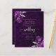 This elegant wedding invitation features plum floral bouquets set off with silver faux foil greenery in two corners, on a background image of purple watercolor agate. The customisable silver grey text combines serif, italic and handwriting fonts. The reverse side provides space for wedding details, along with a QR code guests can scan to visit your website and RSVP.