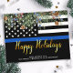 Send Merry Christmas greetings to friends, family, fellow law enforcement departments and your community with this unique Thin Blue Line Police Merry Christmas Card - American Flag in police flag colours, modern black and blue with holly leaves and berries and elegant gold script. Personalise with your message and family name or police department . These police Christmas cards are perfect for police and law enforcement families as well as police departments. COPYRIGHT © 2020 Judy Burrows, Black Dog Art - All Rights Reserved. Budget Police Department Christmas Happy Holidays Postcard