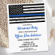 Thin Blue Line Police Retirement Invitations or Police Graduation Party Invitations. Celebrate years of dedicated service, or celebrate your new police academy graduate, and invite friends and family to your law enforcement party with this rustic wood Thin Blue Line Flag Police Retirement Invitation and Police academy graduation invitations - USA American flag design in Police Flag colours, distressed design.This police officer retirement invitation is also perfect for police academy graduation invitations, change venue in personalisation. These budget police retirement invitation cards are an alternative to free police retirement invitations . See our collection for matching police retirement gifts, police graduation gifts,party favours, and supplies. COPYRIGHT © 2021 Judy Burrows, Black Dog Art - All Rights Reserved. Budget Police Retirement Invitation Thin Blue Line