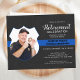 Celebrate years of dedicated service and invite friends and family with this Custom Photo Thin Blue Line Police Retirement Invitation. Personalise with name, title , years of service, address venue. This police retirement party invitation is perfect for all police officer retirement, law enforcement retirement party. See out collection for police retirement party gifts, party favours, and supplies. COPYRIGHT © 2020 Judy Burrows, Black Dog Art - All Rights Reserved. Budget Police Retirement Party Photo Invitation