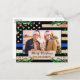 Send Merry Christmas greetings to friends and family with this unique Thin Blue Line Police Christmas Card - American Flag in police flag colours, modern black and blue with holly leaves and berries on a wood background. Personalise with your favourite family photo and name. These budget merry christmas postcards need to be mailed as oversized postcards so may incur standard postage fees but they don't need an envelope or a return address label. COPYRIGHT © 2020 Judy Burrows, Black Dog Art - All Rights Reserved. Budget Police Thin Blue Line USA Flag Christmas Cards