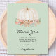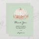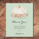 This budget-friendly baby shower thank you card features a watercolor pumpkin and foliage on a soft green background. Perfect for an autumn baby shower, whether for a boy, girl, or gender-neutral baby. Easily customisable. Original Watercolor © Michele Davies.