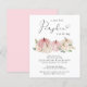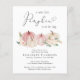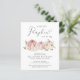 An elegant budget-friendly baby girl shower invitation that features "a sweet little pumpkin is on her way" in soft grey typography and a script with a heart swash and watercolors of pink and cream pumpkins and floral bouquets.