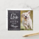 We're adding a little more puppy Love to our family ! Introduce your new little pup with this chalkboard simple rustic slate chalkboard and paw print design announcement card for new dog's, and puppies. These budget new pet announcement postcards need to be mailed as oversized postcards so may incur standard postage fees but they don't need an envelope or a return address label.