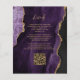 This elegant wedding invitation features a background image of purple watercolor agate trimmed with faux gold glitter. The customisable text combines gold-coloured modern handwriting, copperplate and italic fonts. The reverse side provides space for wedding details on a matching purple agate background, along with a QR code guests can scan to visit your website and RSVP, which saves the cost of printing and mailing separate RSVP cards.