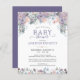 Elegant budget-friendly gender neutral baby shower invitation printed on 4.5x5.6-inch lightweight paper featuring beautiful watercolor wildflower floral bouquets in shades of purple, violet, lilac, blush, peach, dusty blue and dusty pink and elegant handwritten script typography. Ideal for hand delivering to guests. ASSISTANCE: For help with design modification/personalisation, colour change, transferring the design to another product or if you would like coordinating items, contact the designer BEFORE ORDERING via the Zazzle Chat MESSAGE tab or email at makeitaboutyoustore@gmail.com.