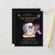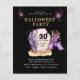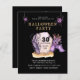 This Budget Evil Scary invitation to a Halloween party with a purple funny bat, a tombstone and purple spiders on a black background . On the reverse side there is also a bat with a tombstone and forest branches in orange and purple tones. Personalise it and enjoy it.