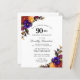 Colourful flowers are nestled into dark green foliage to decorate this 90th birthday party invitation.