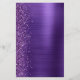 The left-hand edge of this elegant modern wedding invitation features a purple faux glitter border. The customisable text combines white handwriting, copperplate and italic fonts on a purple faux brushed metal background. The reverse side features a matching glitter and brushed metal design.