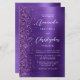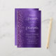 The left-hand edge of this elegant modern wedding invitation features a purple faux glitter border. The customisable text combines white handwriting, copperplate and italic fonts on a purple faux brushed metal background. The reverse side provides space for wedding details on a purple brushed metal background, along with a QR code guests can scan to visit your website and RSVP, which saves the cost of printing and mailing separate RSVP cards.