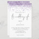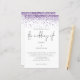 Budget Purple Glitter Confetti Script Wedding Invitation. A LARGER size 5.5” x 8.5” at a budget price, on a SEMI GLOSS 110 lb CARD STOCK, great for invitations, at roughly the same thickness as a postcard, or an elegant 110 lb LINEN stock – for a luxury, slightly thinner feel at great value. PLEASE NOTE THE OPTIONAL ENVELOPES ARE A LITTLE BIGGER IN SIZE AT 6.75” x 9” approx. This budget size alternative is also available in other paper choices. The FELT 100 lbs paper is buff coloured, NOT white, so adds a rustic touch. The MATTE 80lbs paper stock is bright white, for crisp printing, great for your menus and programs, whilst the SATIN 80lbs paper is thin and light, ideal for enclosures A stylish set typography in black for the main heading the Wedding Of complementing the rest of the text which you can easily personalise. A purple faux glitter border runs across the top on each side.