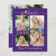 A budget-friendly, modern purple and gold graduation announcement printed on 4.5x5.6" lightweight paper instead of cardstock featuring faux metallic gold calligraphy script typography and graduation cap and personalised with 5 photos (a photo collage of 4 pictures on the front and 1 on the back) against an editable purple background colour you can change to a school colour or favourite colour. The class year is editable for other years. The back side features a full-bleed photo and an optional text field for your custom text with details about your graduate. Ideal for conservative budgets and/or hand delivering. Envelopes sold separately on the ordering page. ASSISTANCE: For help with design modification/personalisation, colour change, transferring the design to another product or if you would like coordinating items, contact the designer BEFORE ORDERING via Zazzle Chat or makeitaboutyoustore@gmail.com.