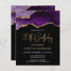 This trendy 90th birthday invitation features a watercolor image of an agate geode in shades of purple with faux gold highlights. The words "90th Birthday" appear in faux gold glitter in decorative modern handwriting font. Customise it with the name of the honoree in gold coloured text and the details in white. The same purple agate image appears on the reverse side.